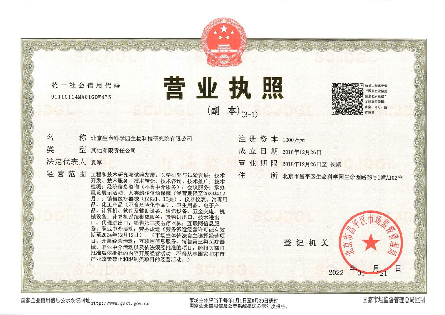 北京生命科學園生物科技研究院(以下簡稱“北京生物樣本資源庫”)(Biobank of Life Science Park,簡寫“BoLSP”)是一家由北京市科委和中關(guān)村生命科學園共同支持設(shè)立的第三方生物樣本庫公共服務(wù)平臺,秉承北京重大疾病臨床數(shù)據(jù)和樣本資源庫(以下簡稱“北京庫”)(Beijing Biobank of Clinical Resources,BBCR)十余年的發(fā)展成果,聚合眾多臨床樣本專家的專業(yè)共識,致力于在生命科學、生物醫(yī)藥研究領(lǐng)域發(fā)揮銜接樣本資源持有者與研究者的橋梁作用,解決生物樣本資源開發(fā)上下游信息不對稱、資源共享困難等問題。研究院在北京中關(guān)村生命科學園昌平園區(qū)建立了2000㎡生物樣本庫,最大存儲規(guī)模達1000萬份。研究院遵循CNAS-CL10:2020《生物樣本庫質(zhì)量和能力認可準則》,同時結(jié)合北京庫過去十年的工作經(jīng)驗與教訓,建立了一套完善的生物樣本保藏質(zhì)量管理體系,從人、機、料、法、環(huán)、控多個角度,實現(xiàn)生物樣本保藏過程的全面質(zhì)量控制,先后獲得國家科技部頒發(fā)的人類遺傳資源保藏行政許可證書和中國合格評定國家認可委員會(China National Accreditation Service for Conformity Assessment,CNAS)頒發(fā)的“CNAS認可證書”。